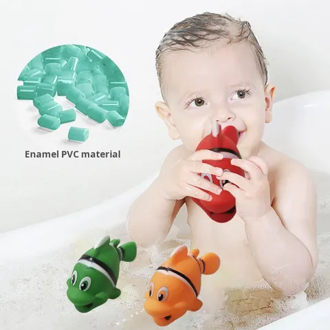 Venta al por mayor de juguetes de baño personalizados coloridos flotador de agua Fish Squeak para niños pequeños