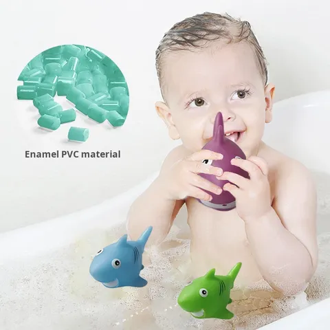 2025 Trending Little Duck PVC Baby Bath Squeeze Water-Spraying Shark Toy